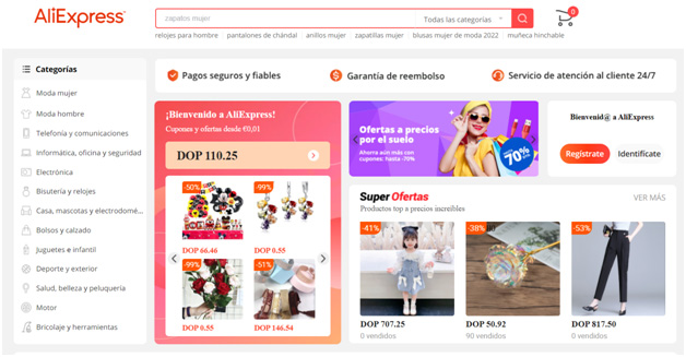 Una gran ventaja de esta web es que ofrece los productos a un precio más bajo, pero con buena calidad. Su servicio de envíos es rápido y no cuenta con límite por peso. Cuenta con artículos como móviles, joyas, ropa íntima y productos de jardín.